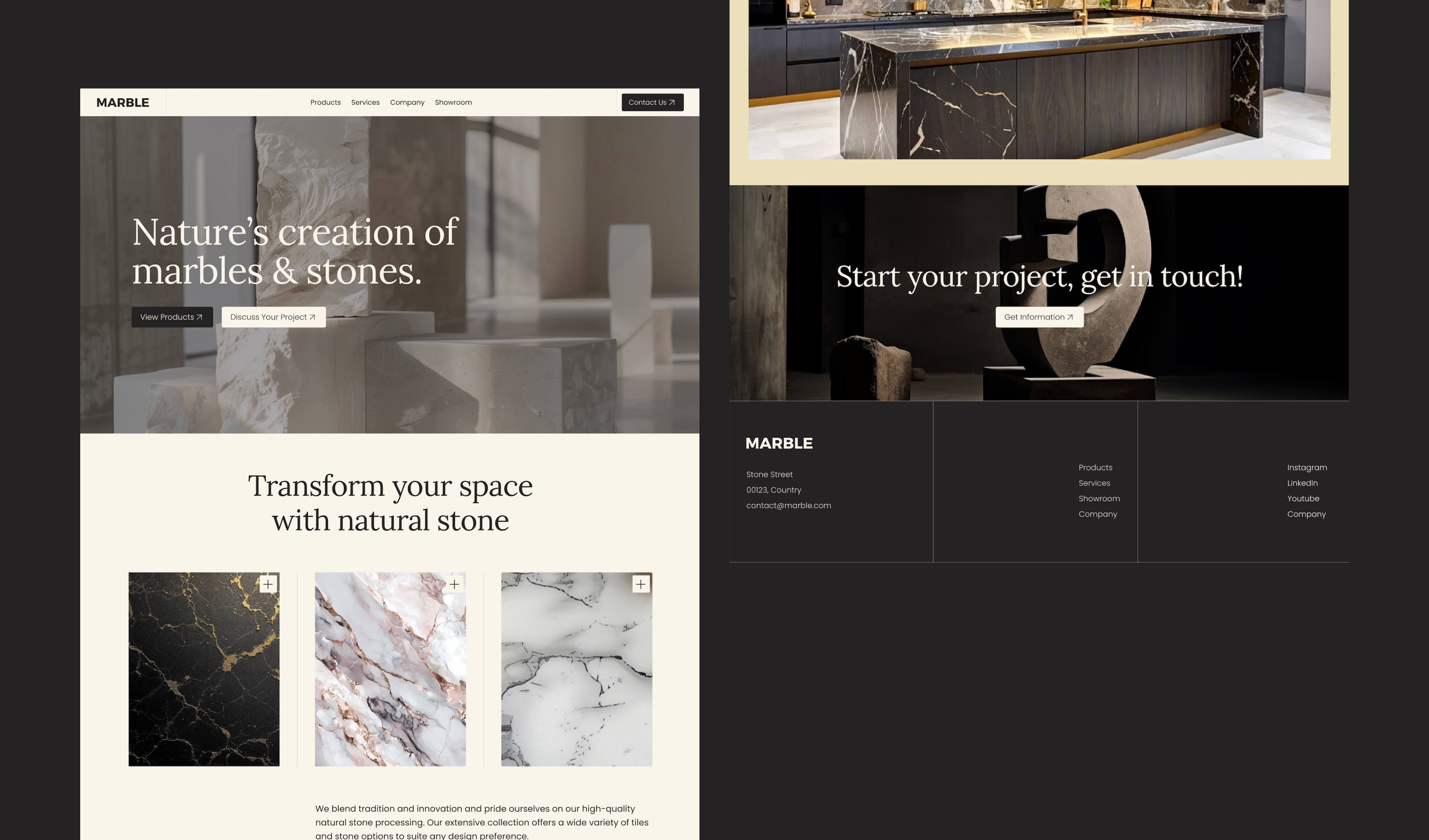 A timeless web design tailored to showcase a stone company.