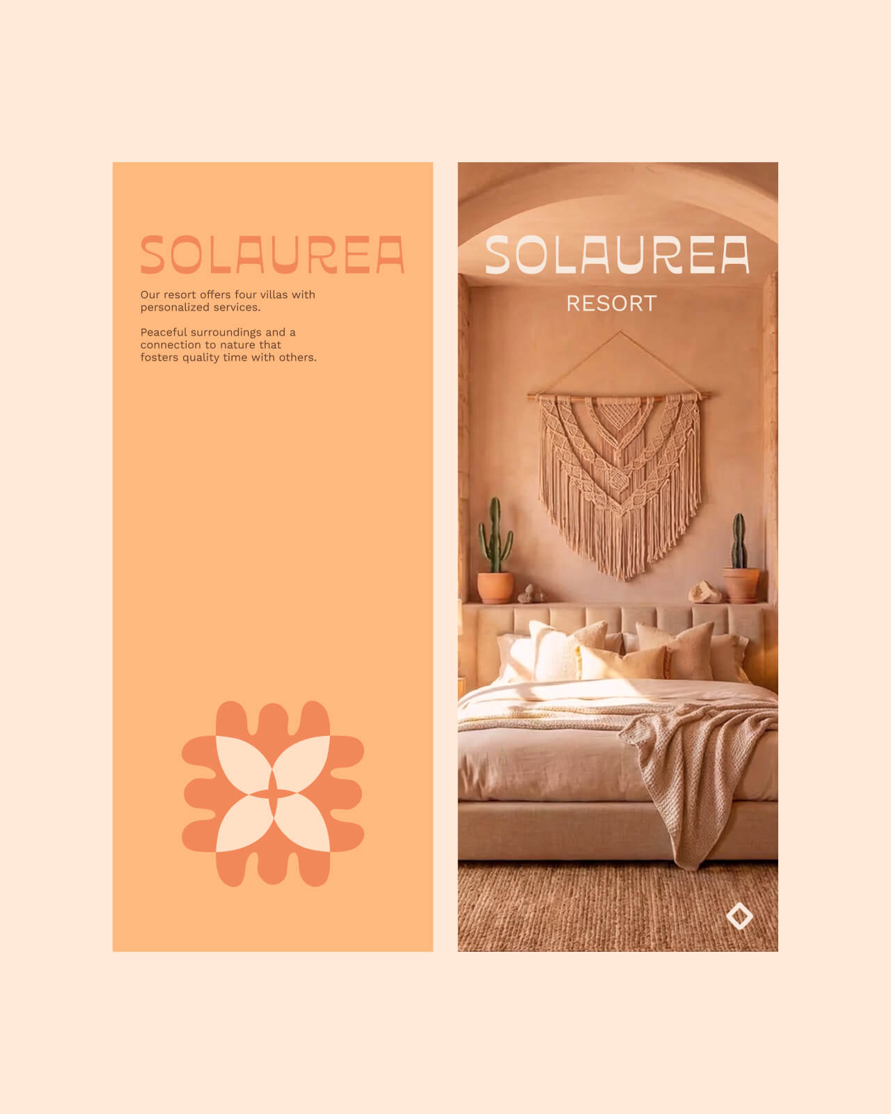 The logo was designed using elements inspired by desert flowers, enabling the creation of a brand identity for each villa and its specific character and interior, formed by the resort’s logo.